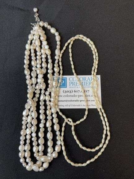 Two necklaces, one with three strands, no maker marks observed; Longest measures approximately Length 34 inches; Wear commensurate with age. See photos (1)