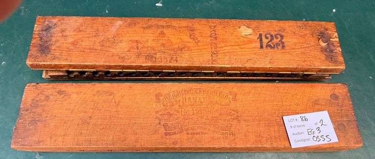 | Two antique cigar molds; Maker marks are visible on both; Each measures approximately H 2 1/2 x W 22 x D 4 1/2 inches; Wood warped on one and will not close; Wear commensurate with age and use. See photos (B) |