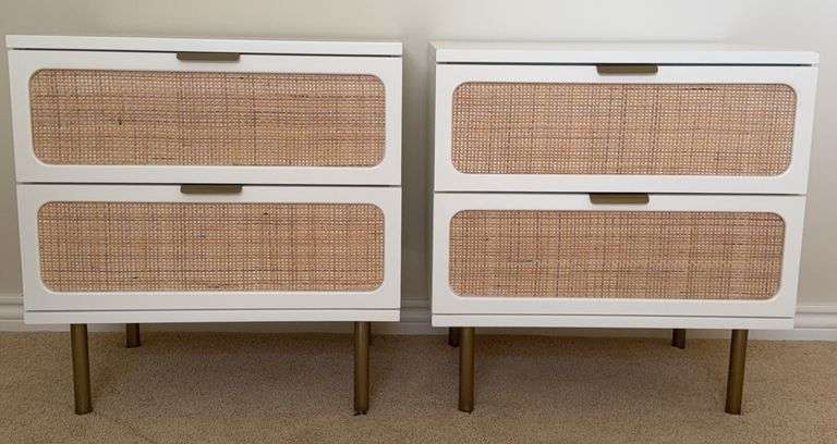 Two matching end tables marked open “Williams Sonoma", each measures approximately H 24 x W 23 D 17 inches; items are used, minor scuffing is present; See photos. Pick up in Longmont (B).