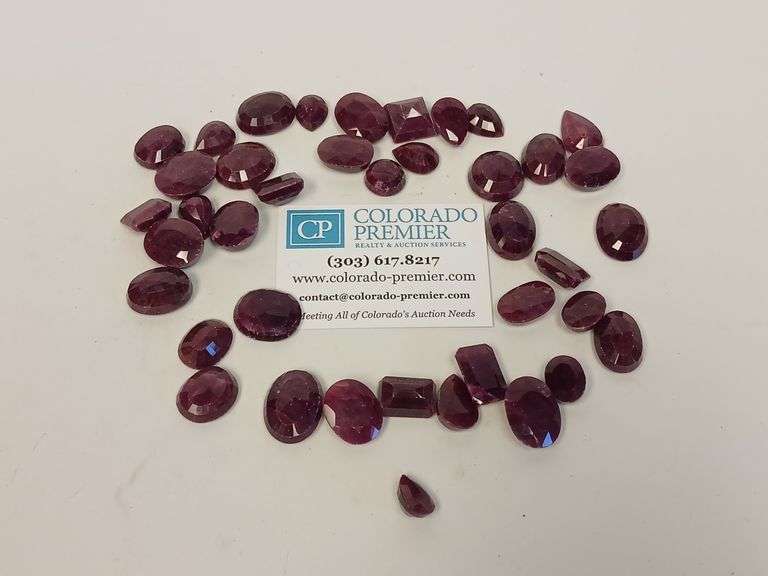 Large collection of approximately 40 faceted rubies in various shapes and sizes; Total weight of 240 grams; Stones measure approximately .5 to 1 inch; Preowned with little to no wear observed. See photos